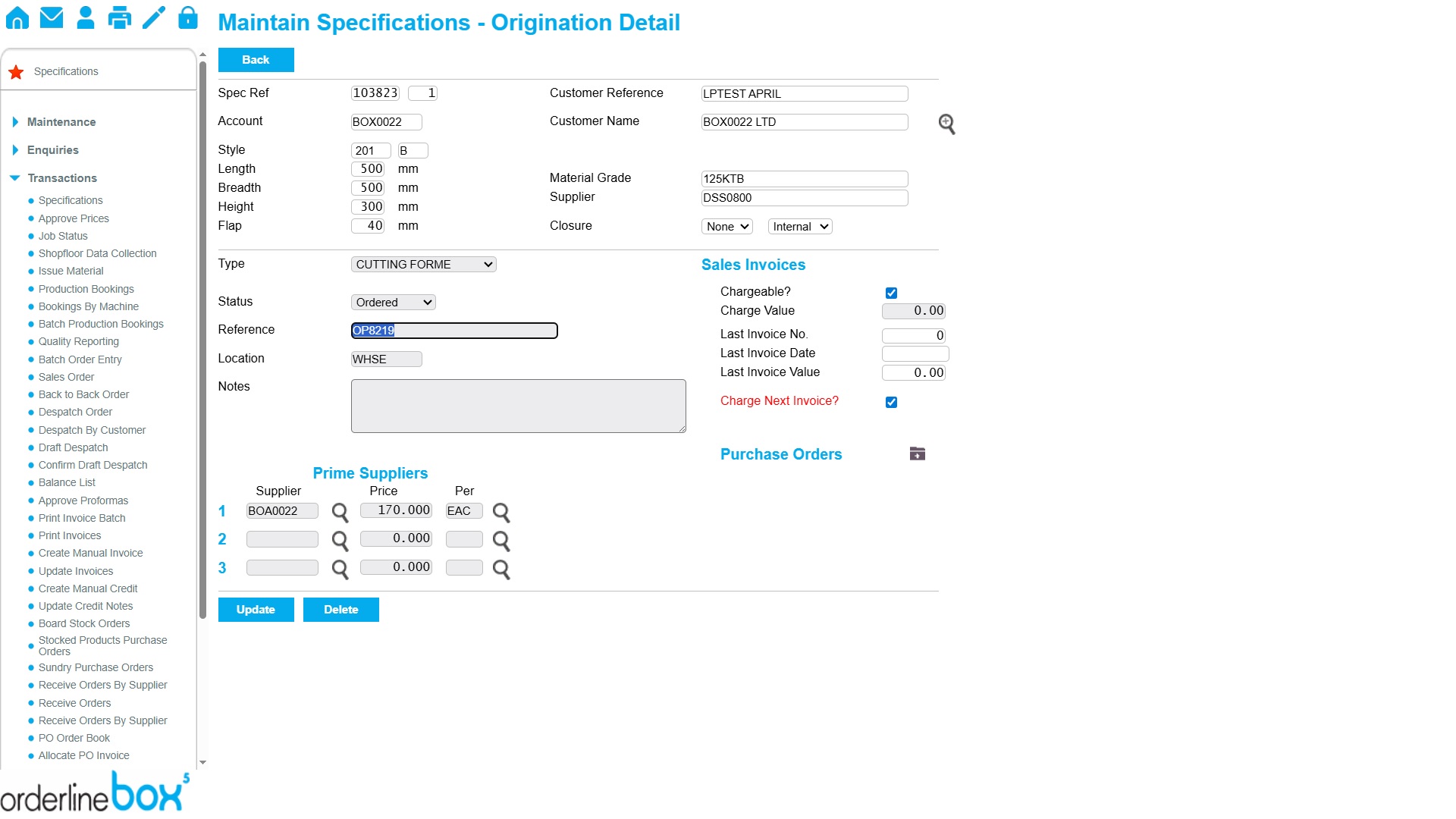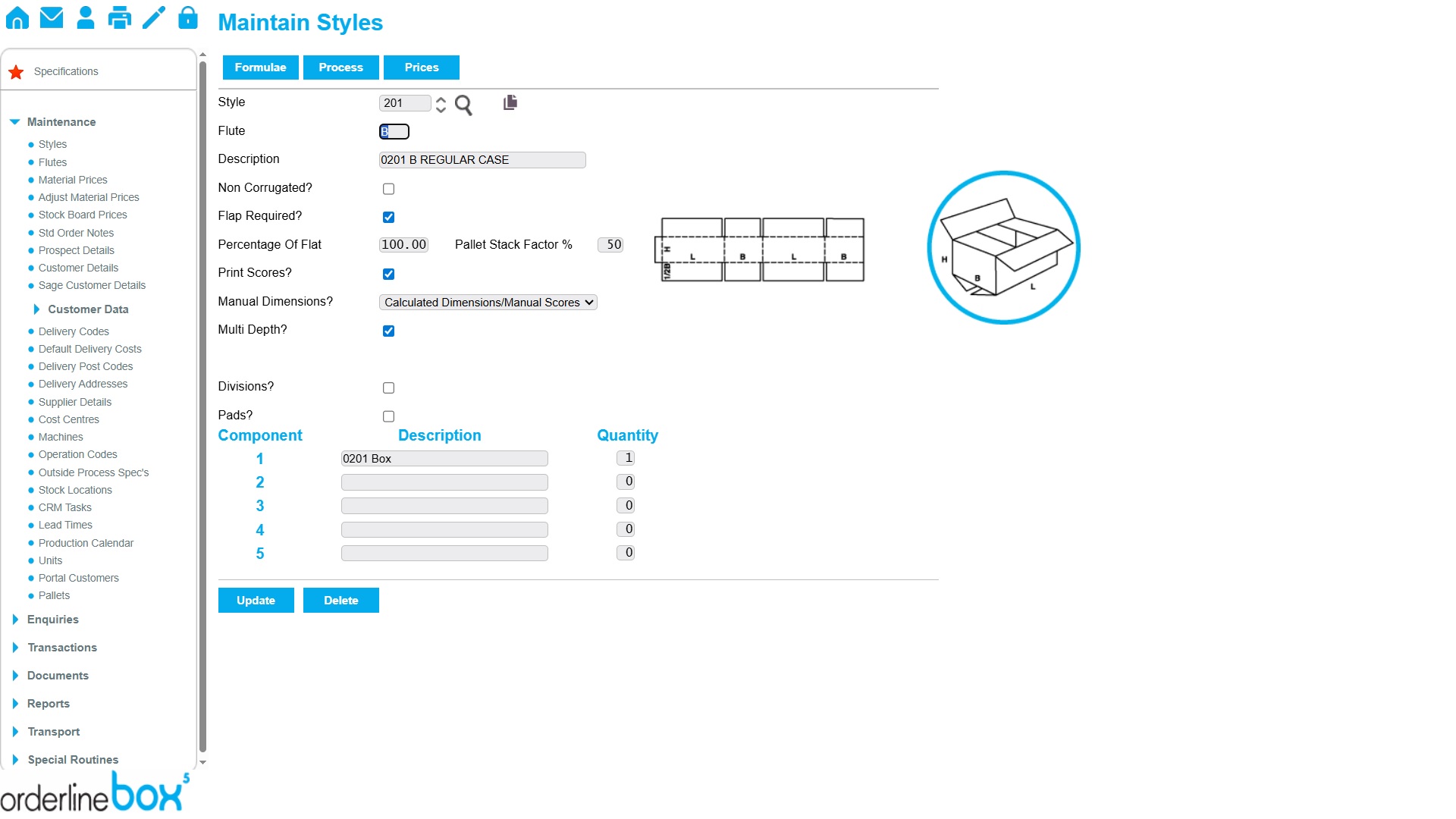 OrderlineBOX allows you to store all the relevant FEFCO styles, supplier prices lists, machine routings and delivery data you need to generate a quote quickly and simply. All the relevant data is displayed on a single page to allow you rapid data entry and quick review. There’s no rolling through complex pages of options, menus and tabs. You can access all your key data from one central screen. OrderlineBOX saves you time and money.