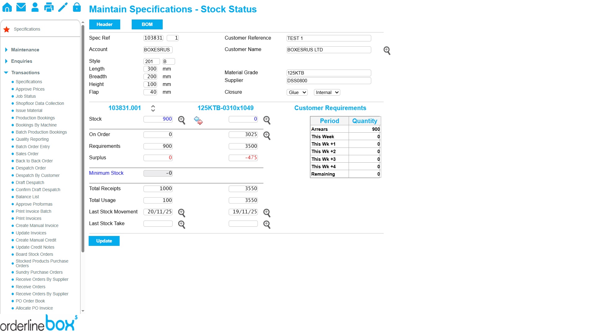 OrderlineBOX is a fully integrated software suite consisting of modules which helps you manage your sheet plant or integrated corrugated plant efficiently and effectively. The optional stock module is fully integrated and can be added to your software suite wherever there is a requirement to manage stock. Ideal for both sheet plants and merchants supplying third party product, it helps you manage stock levels effortlessly.